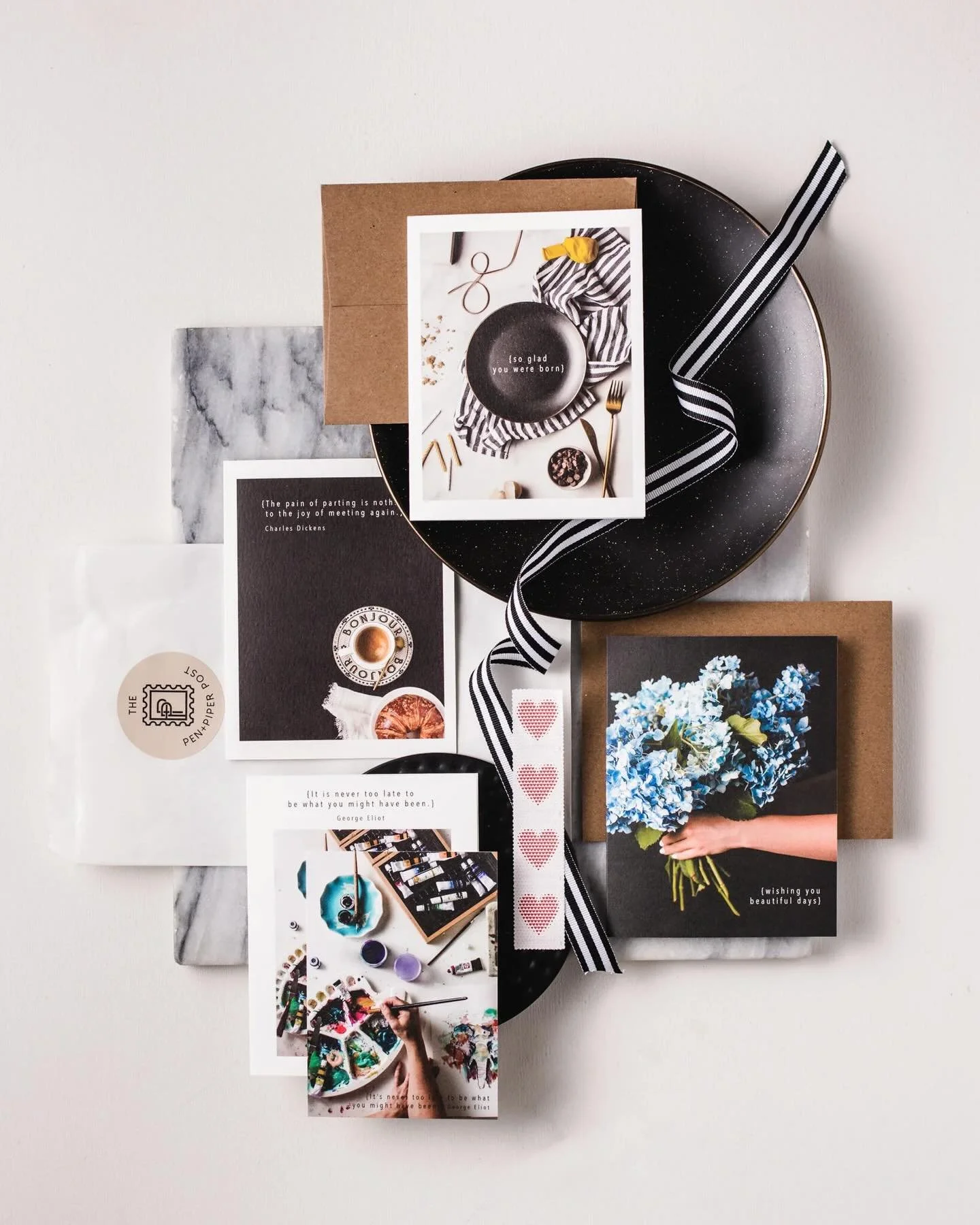 In 2019 Noelle added the Art Shop of greeting cards, notepads, blocks for display, and a monthly card subscription - available on the website and in boutiques across the U.S. Through the use of natural elements, thoughtful details, and encouraging words from famous authors, the collection focuses the lens on capturing our artful everyday moments and sharing them with each other in a form that endures.